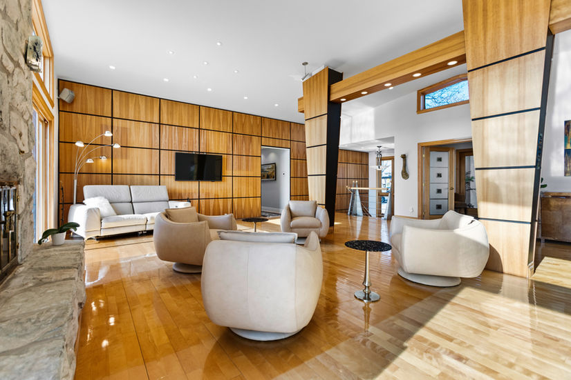 Une vie élégante au bord de l'eau | Bienvenue au 5639, rue du Bocage. Cette demeure majestueuse à l'architecture remarquable s'étend sur plus de 1 884 m² de terrain paysagé le long de la Rivière-des-Prairies, offrant plus de 52 m de rivage et des vues spectaculaires. Plafonds cathédrale, vastes baies vitrées et espace de vie lumineux allient raffinement et sérénité. Cuisine de chef, arrière-cuisine et garde-manger pour recevoir avec élégance. Salle de sport, spa, sauna et bar avec vue sur l'eau. Nichée en impasse, à 10--15 min du REM (Réseau express métropolitain)... Une opportunité rare à saisir !